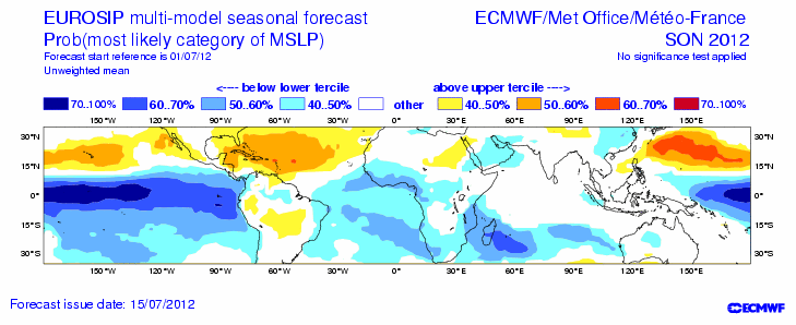 The latest Eurosip seasonal data suggest that we may see an up tick in activity in the Western Basin as we head toward late August/Early September. With a weak Nino developing, the chances of activity being more 'home grown' in nature in the Western Gulf/Bay of Campeche would tend to increase, IMO. I just do not see this being a MDR type of season with long tracking systems rolling off Africa heading W that we track for days on end. My hunch is for quicker developing systems much closer to home as we head toward peak season and possibly even into early October before the cold fronts become active and end any tropical threat for the NW Gulf. We will see.