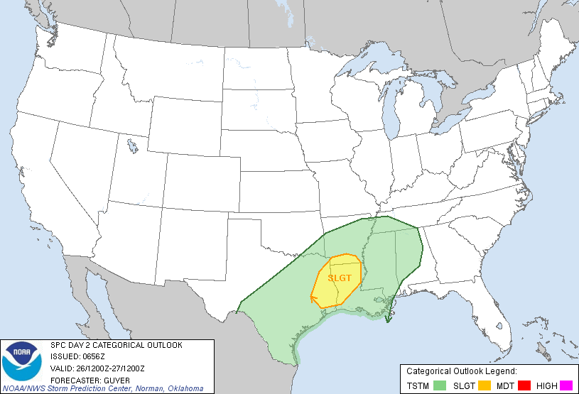 ...THERE IS A SLGT RISK OF SVR TSTMS FROM NORTHEAST TX INTO PORTIONS