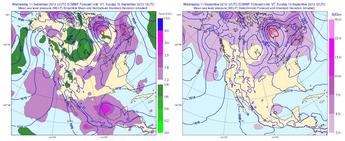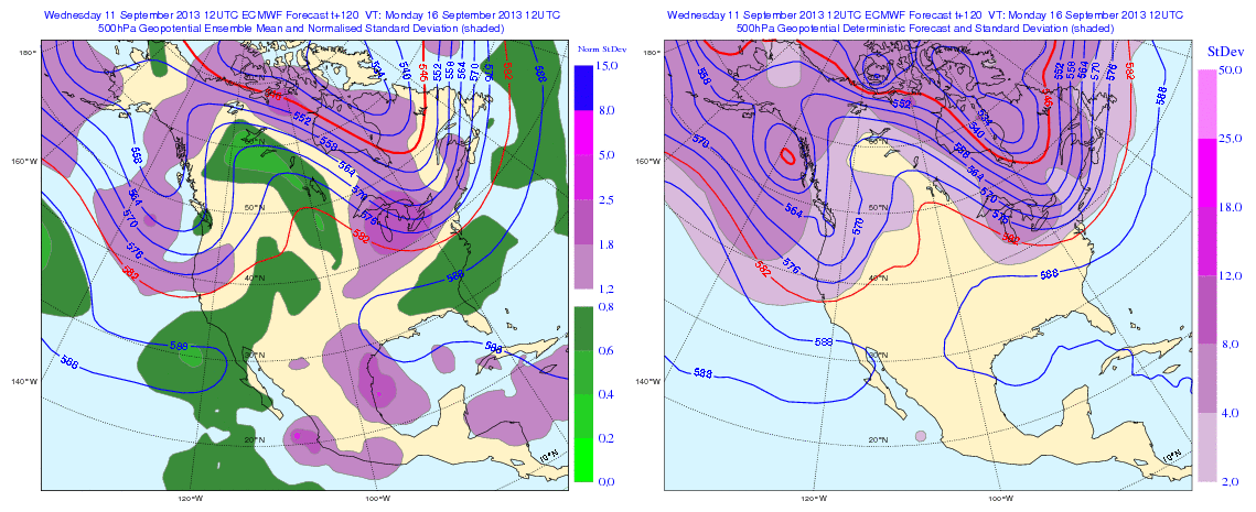 The 12Z Euro ensemble mean (Mean Sea Level Pressure) have also shifted a tad N and have a bit more spread suggesting a further N motion may be possible. Also the 500mb ensemble mean suggests a weakness or a bit of an E shift in the Upper Ridge next week as well.
