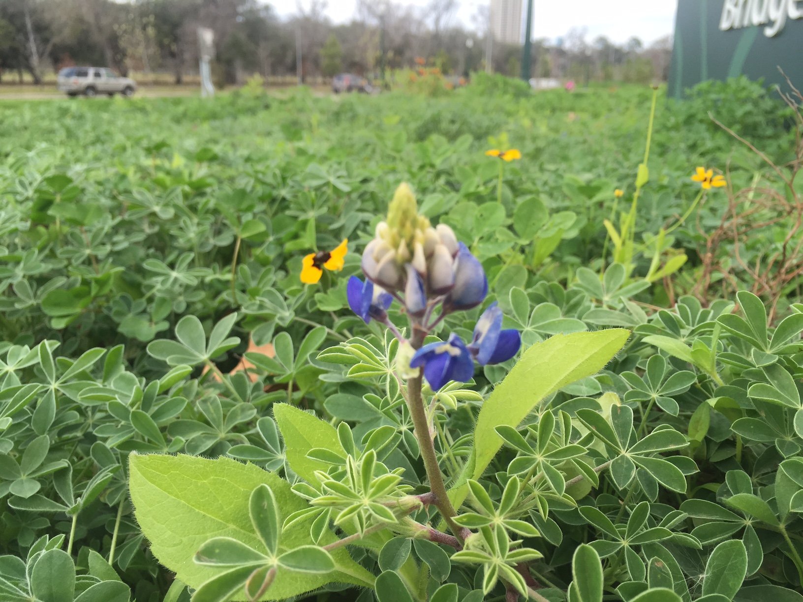 I've been monitoring this patch of wildflowers on the Hermann Park side of the relatively new Bill Coats bridge over Brays Bayou since last spring. There hasn't been one time when I passed this patch and didn't see at least one bluebonnet blooming since last spring. Here's a shot I took on February 7th. Most of the plants in the picture appear to be bluebonnets, but they look different than earlier this winter when most were brown and shriveled up. That one lone bloom is signaling the arrival of spring!