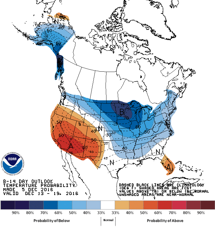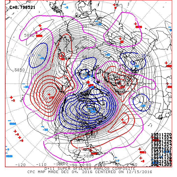 I believe Brooks mentioned mid December in his blog on KHOU.com today. The afternoon updated Climate Prediction Center Day 11+ Analogs suggest some of the memorable December analog dates and the temperature forecast into mid month supports additional cold air intrusions.