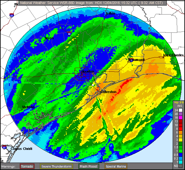 Scholes Field) and amounts of 10-12 inches in Texas City obviously