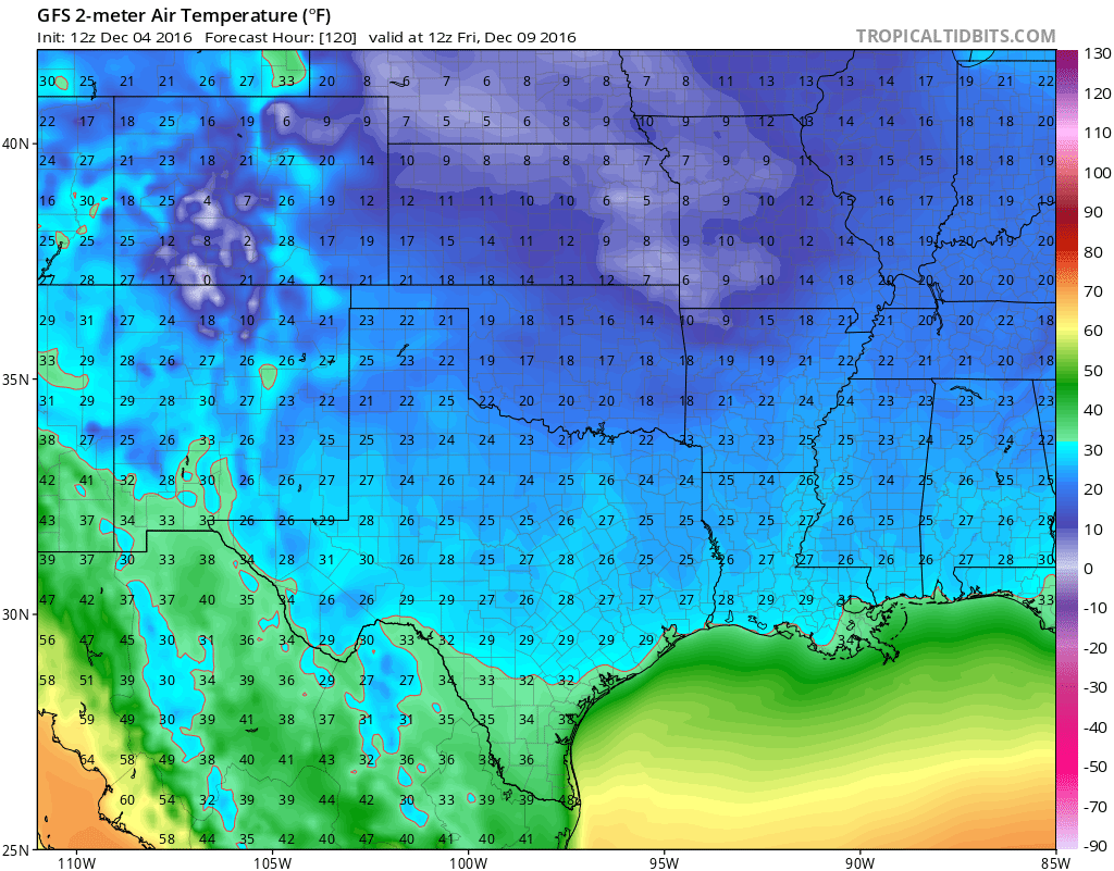 for Cypress, TX, Accuweather (currently) has our low hitting 28 Thur night http://www.accuweather.com/en/us/cypres ... r/33748_pc