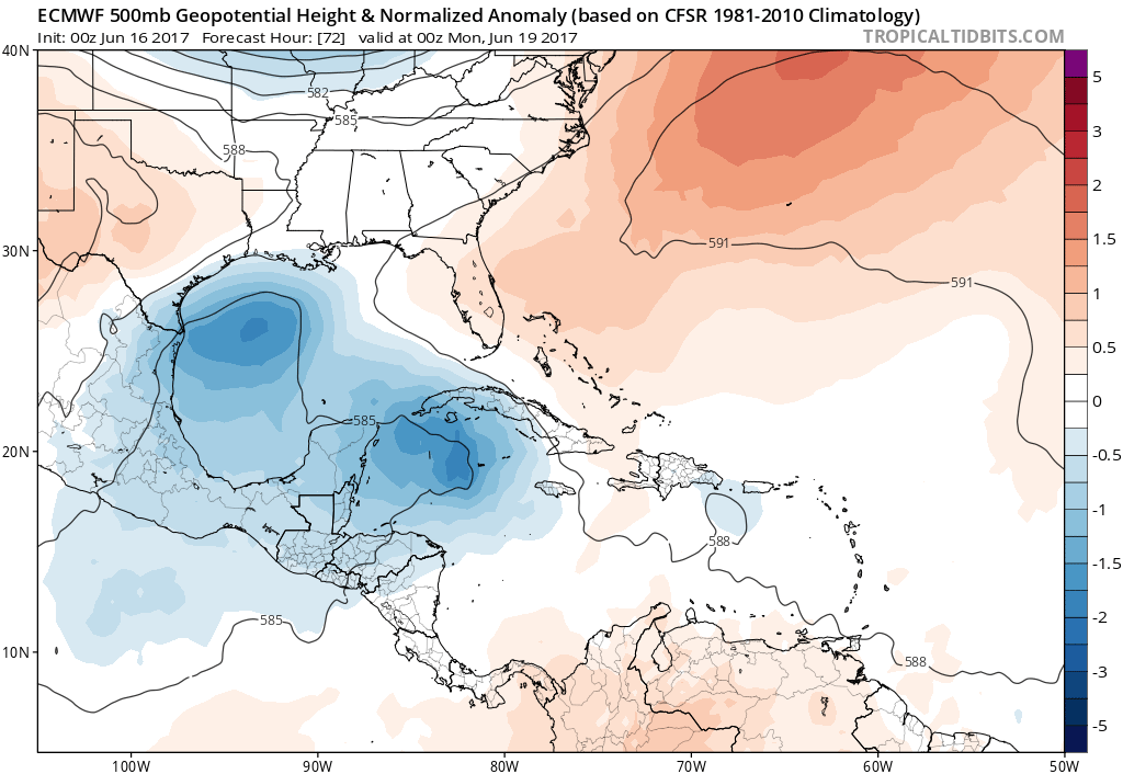 Another fly in the ointment is the development of a cool cored upper shear axis or Tropical Upper Tropospheric Trough meandering West across the Central and Western Gulf beginning this week.