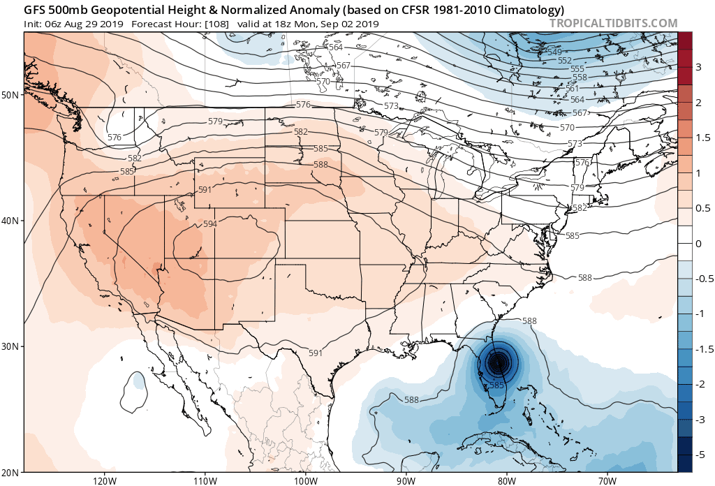 While I don't think Florida is clear of this storm yet, for those who are interested I created a trend gif (click on the image below so it plays) of the GFS to show why models are trending east over the last day. Keep an eye on the trough over Quebec into the Northeast United States, because models have trended stronger and deeper making all the difference. In the previous couple of days, models have actually indicated a weak (relatively flat) ridge would setup over the SE United States this weekend behind the trough but that is no longer the case anymore. The trough is now much deeper and breaking down any attempt for a blocking pattern. This is why the speed of Dorian has increased slightly, but more importantly, it does not track as far west. This will be something we need to monitor going tomorrow and Monday to see if models continue this trend or start to walk back west some. It also shows the importance of increased sounding data and resolution and how much influence it can have.
