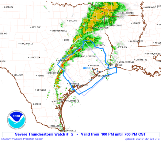 jasons2k wrote: Wed Jan 06, 2021 1:27 pm Meanwhile, SE Texas is under a Severe Thunderstorm Watch until 7pm....