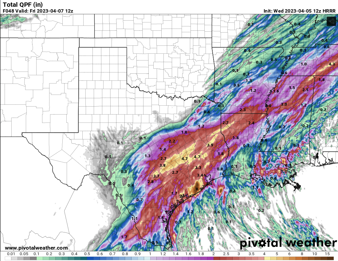 don wrote: Wed Apr 05, 2023 2:29 pm Its pouring here.Parts of north Houston have already picked up almost 2 inches today with more rain coming...