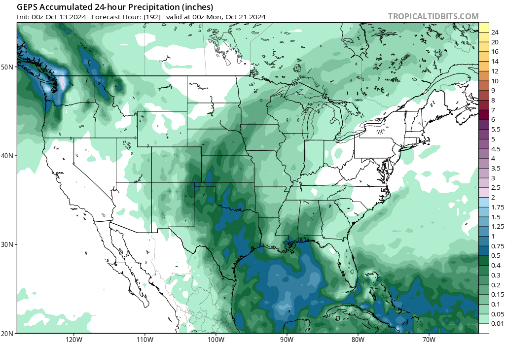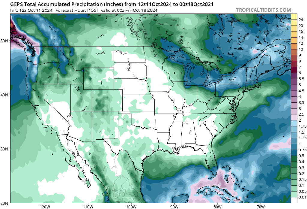 The GEPS Ensemble is most optimistic about rain next weekend. NOAA has a 30% chance for now. Texarrakis live on until then.