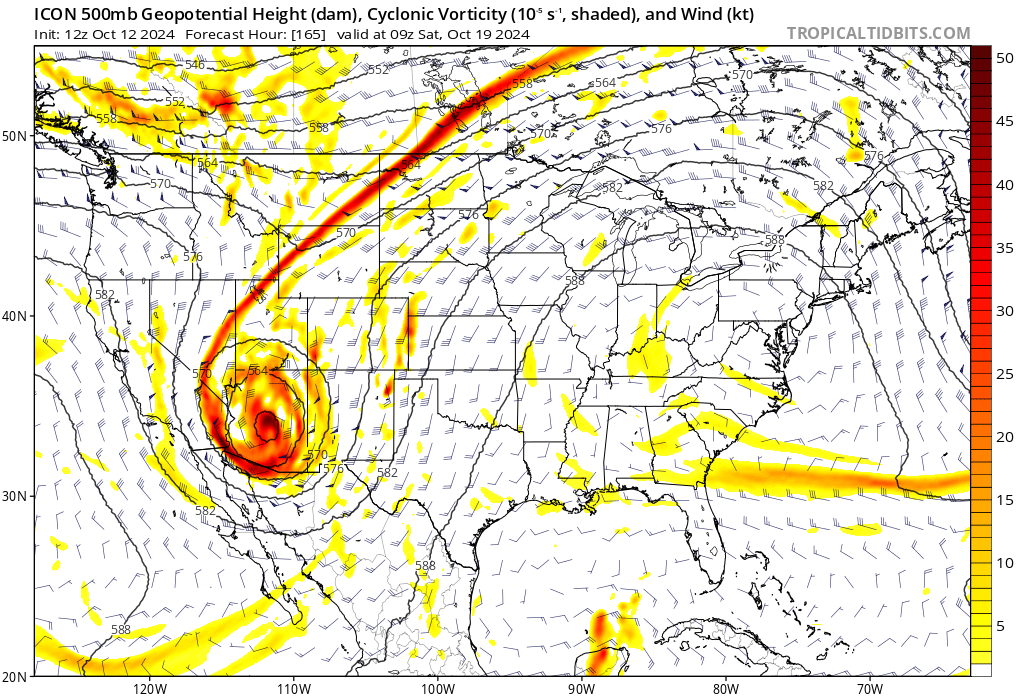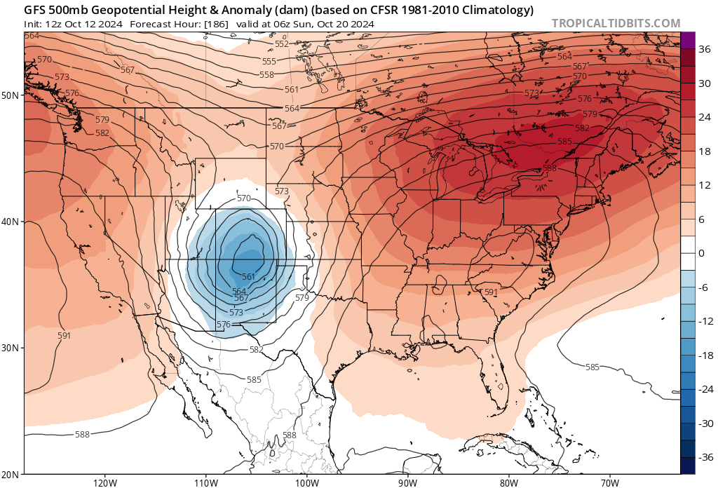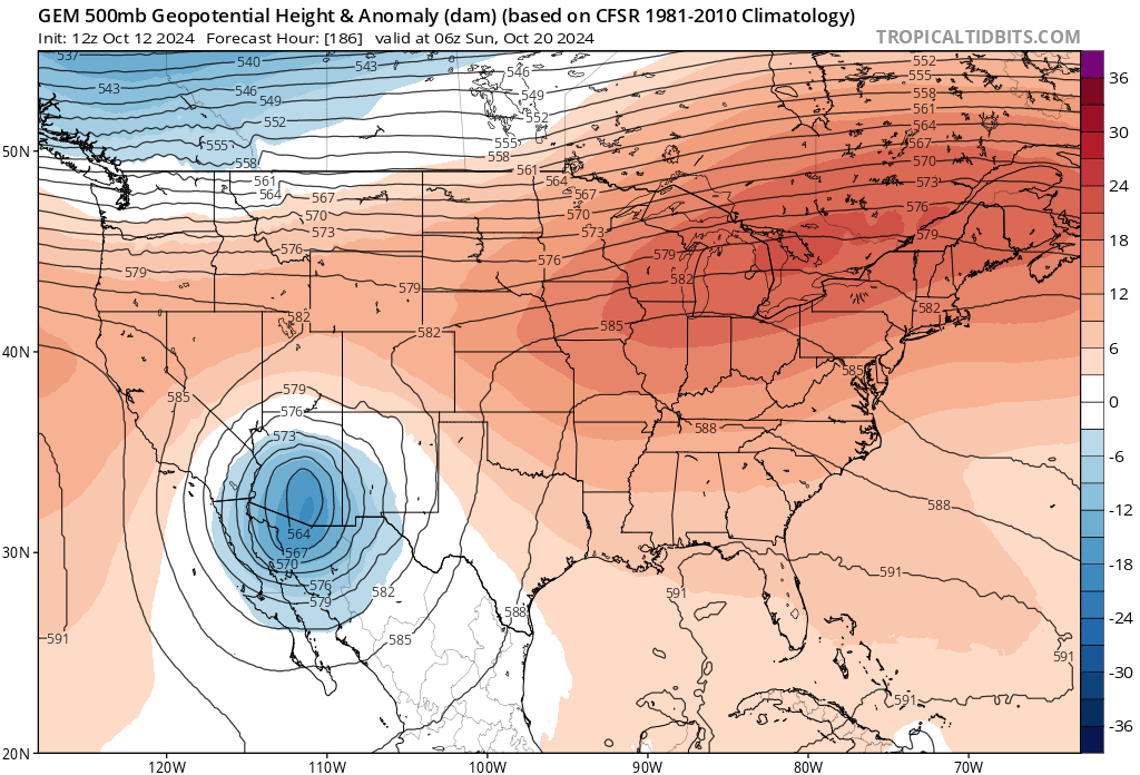 Please God, let this pan out.don wrote: ↑Sat Oct 12, 2024 12:04 pm Its early... But models are starting to show a potent cutoff "bowling ball" low digging into the southwest around the 20th,with a SE Ridge to the east. Could be a good setup for storms and heavy rain in the state. We'll see...