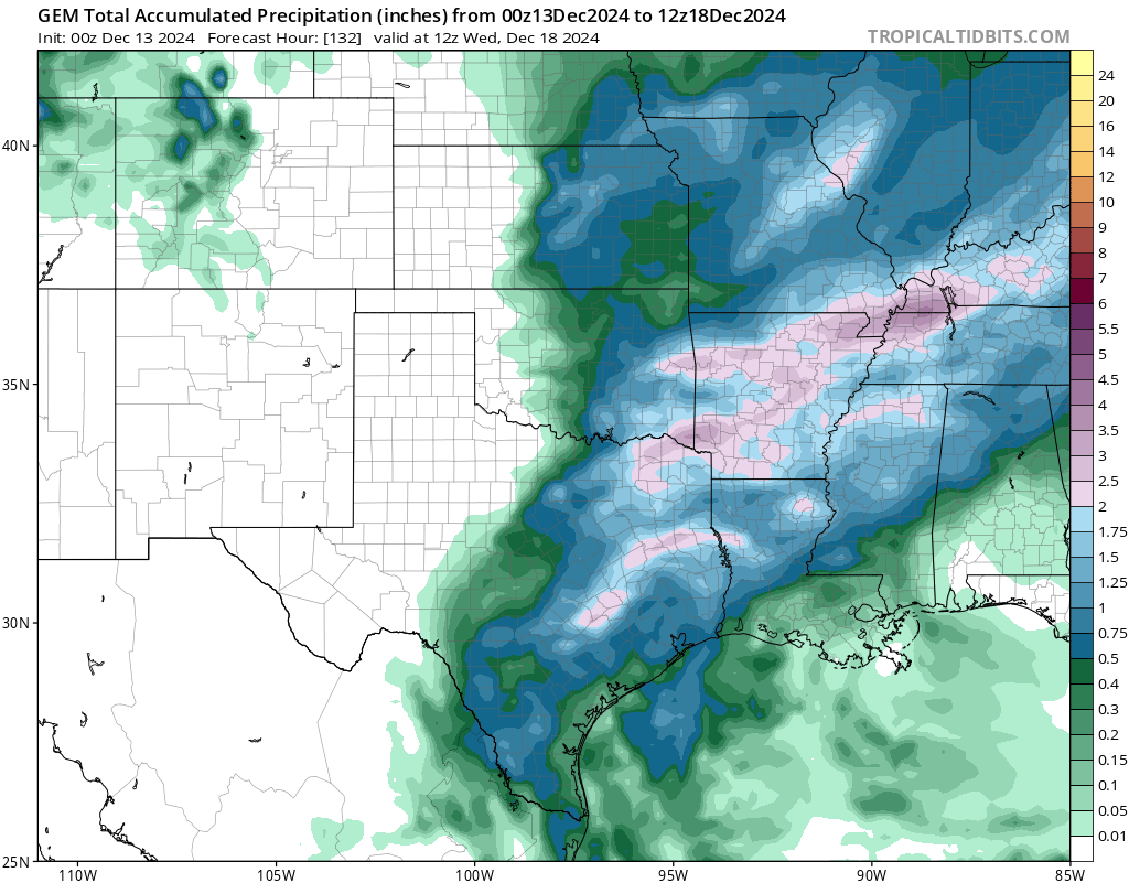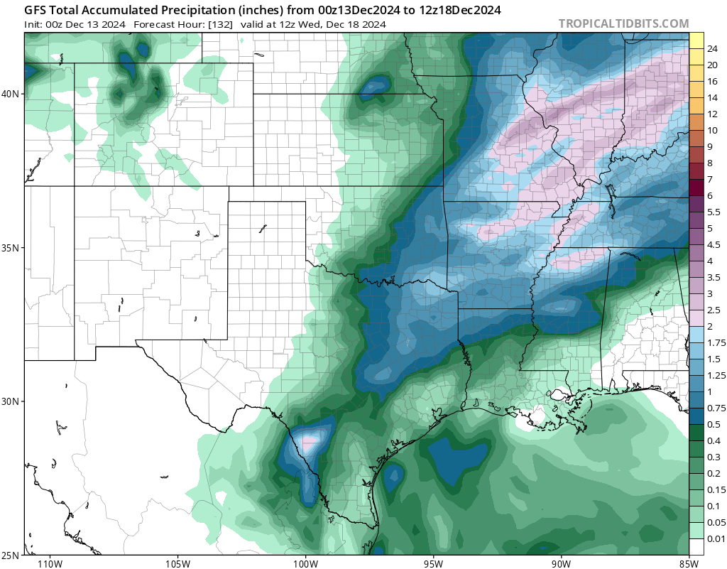 Isn't that central texas and not here?Stratton20 wrote: ↑Thu Dec 12, 2024 4:45 pm Man the 18z GFS is a classic setup for some over running precipitation down here, i really love that 500mb height pattern