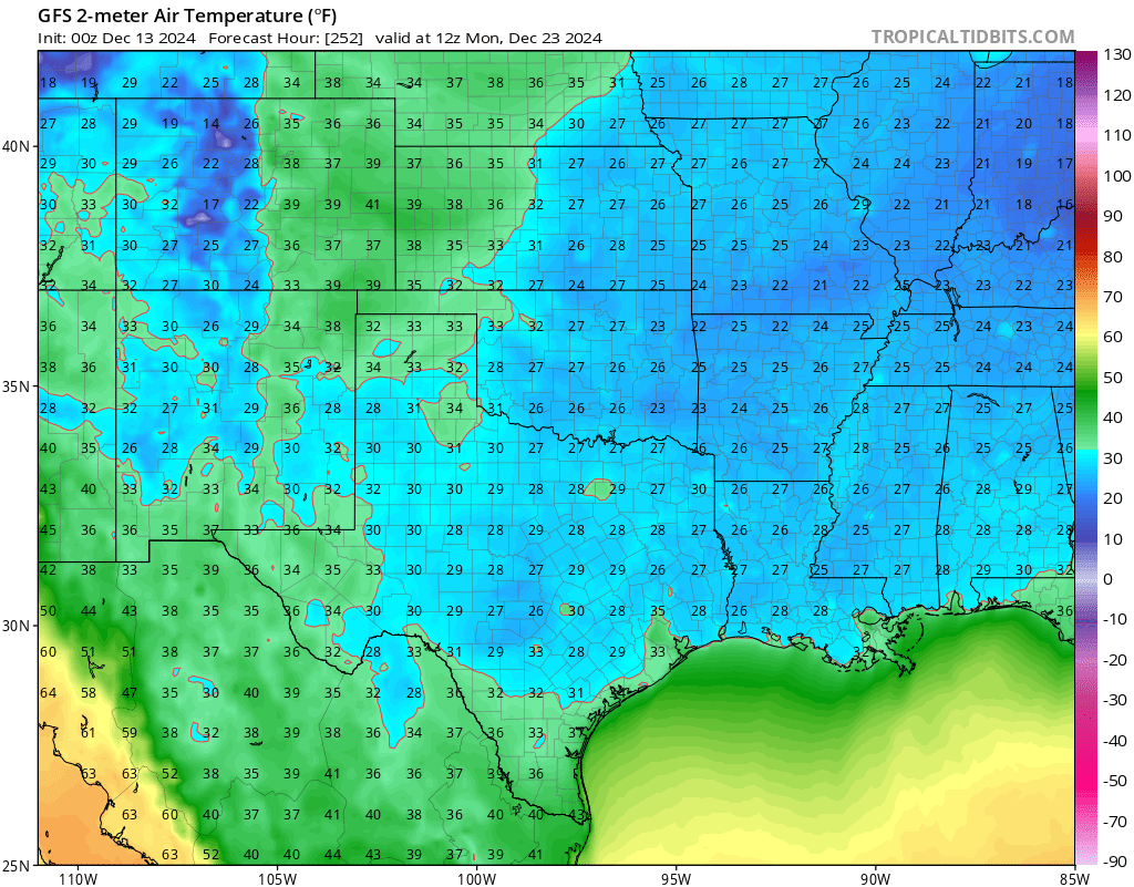 Most of the coldest stuff during Christmas week will be east of us, but CMC brings Texas a bit more chill.
