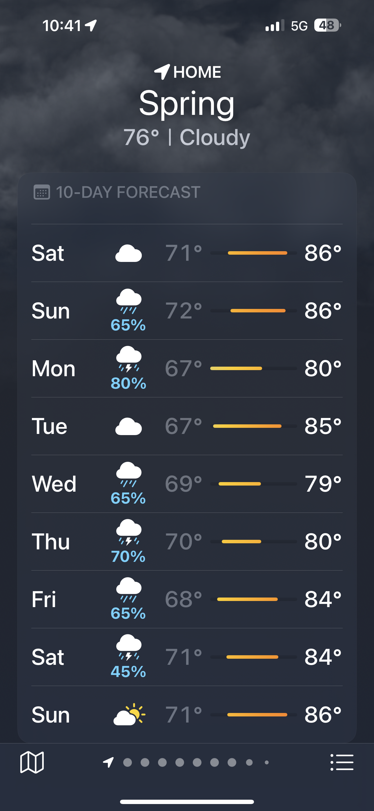 Coincidentally, I just checked my trusty WUnderground app and they dropped my previously 80% chances Sun/Mon to 50% for League City