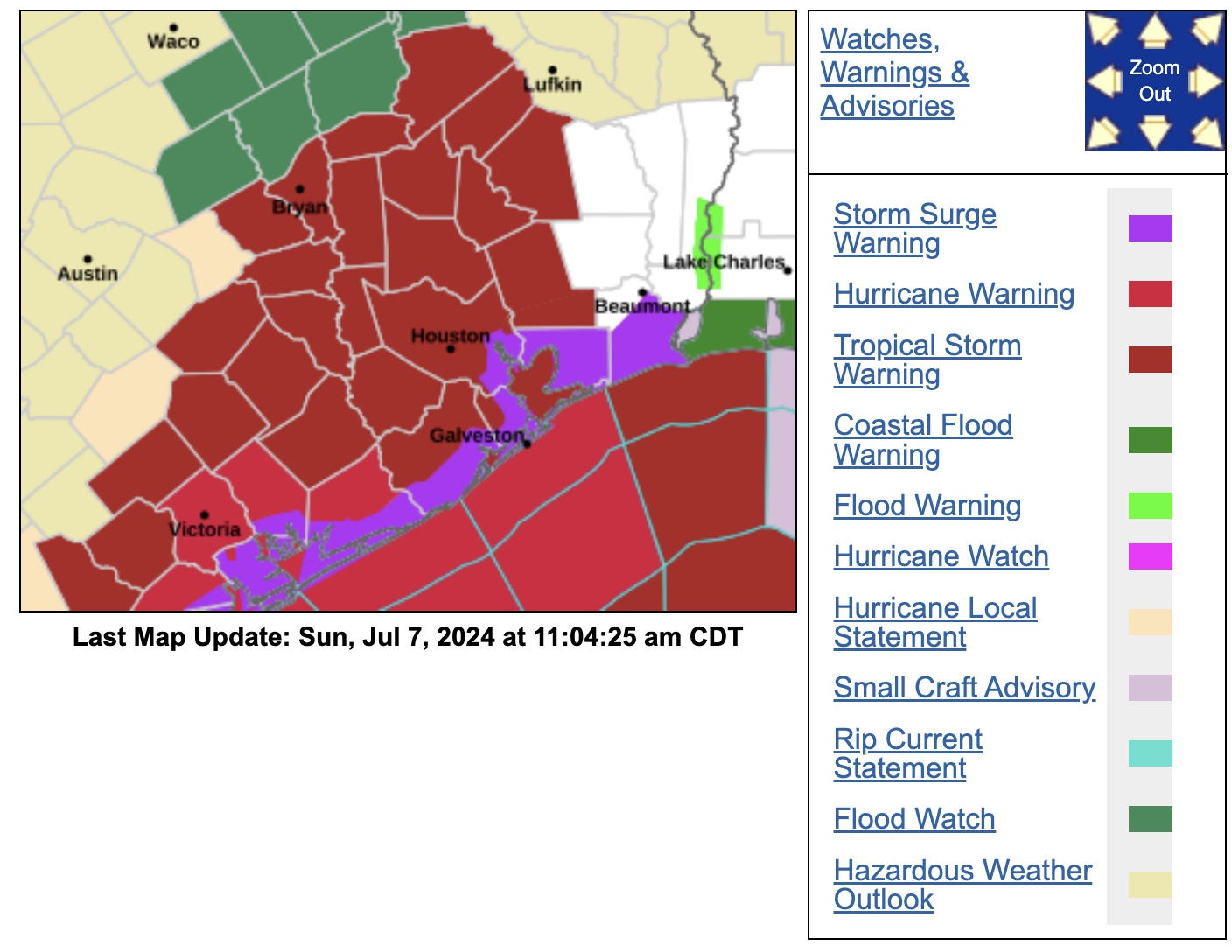 That was a few hours ago. Our Tropical Storm Watch is now a Warning. Here is the updated watch/warning map:don wrote: ↑Sun Jul 07, 2024 11:00 am Video from Jeff Lindner