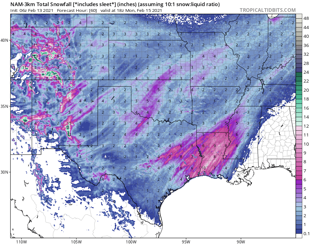 Wow! How many times do you see inches on snow reaching into the gulf from SETX? Never! This new update gives us in Beaumont 6-8 inches of snow. Wow! I agree, we might not ever see this again. Why is SETX the hot spot for “never see again in your lifetime” storms? (Harvey, Imelda, Storm Elsatxsnowmaker wrote: ↑Fri Feb 12, 2021 11:35 pm New Ukmet. Oh my...