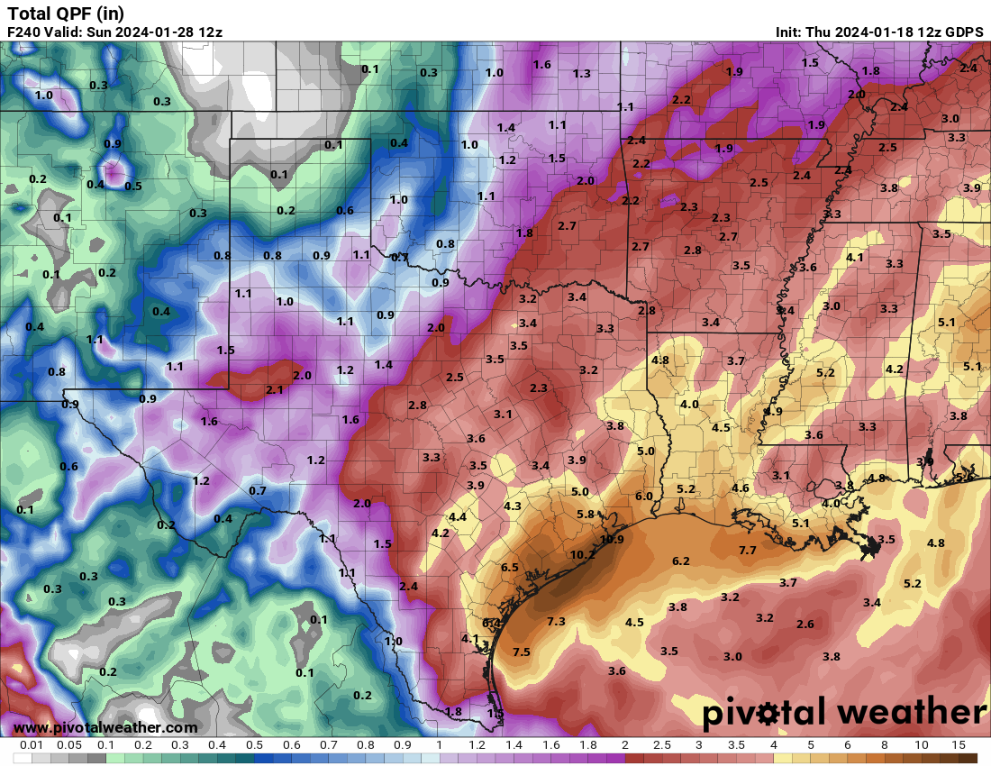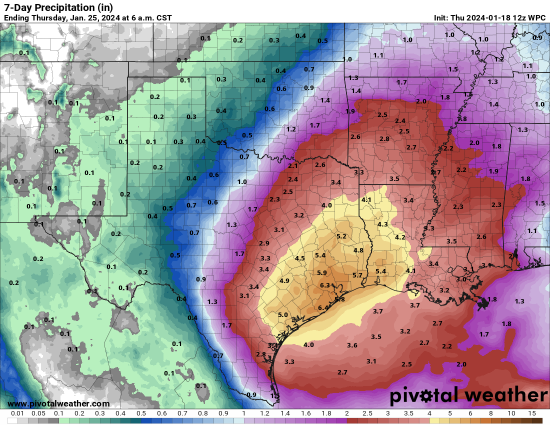 When I use the word “interesting”, most of you know that is not necessarily a good thing. The storm riding the southern branch will be a slow mover into the Rio Grande Valley, and also have a Tehuantepec moisture fetch. The last time we saw that feature? Hurricane Harvey on August 25, 2017. While winds will not be a problem next week in TX and LA, it is likely that torrential rainfall will be to the right of Interstate 35, below Interstate 30 and eastward to the middle and lower Mississippi River watershed. Intense thunderstorms may be involved. My real concern here is that the numerical model guidance shows a very slow moving system that does not start to accelerate until January 28 or so.