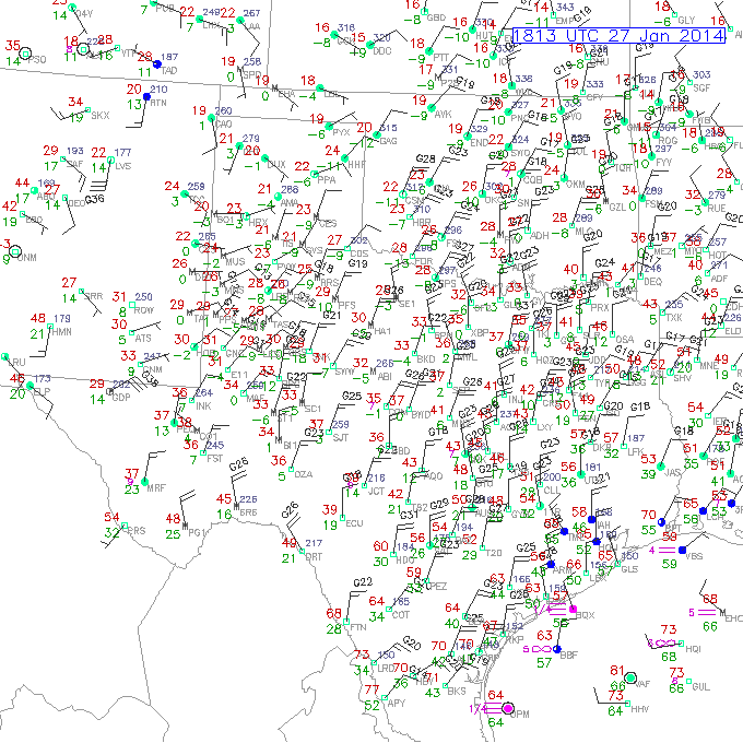 The 850mb Arctic front is lagging a couple of hours behind the pre frontal trough. The actual 850mb front is arriving across the Hill Country at this hour. Temps in the Central Plains are in the single digits.