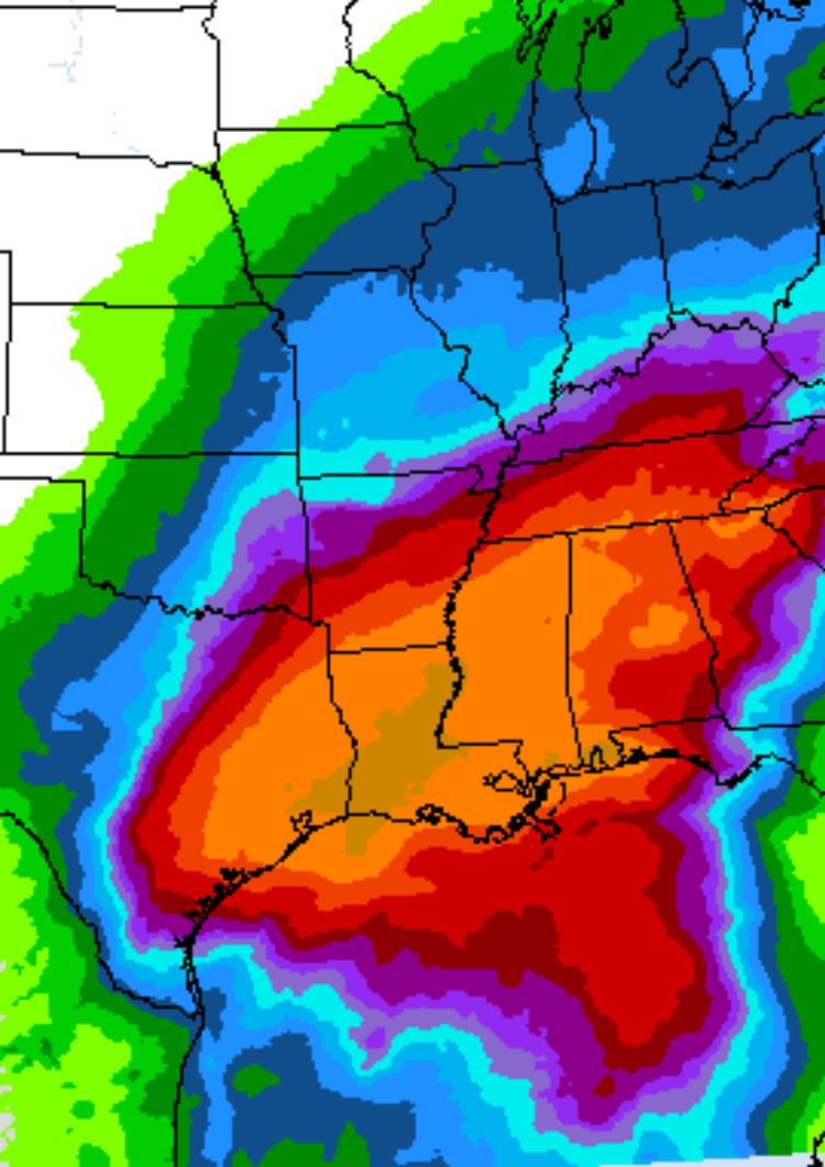 inches at the Gulf Coast, and a strong longwave trough digging