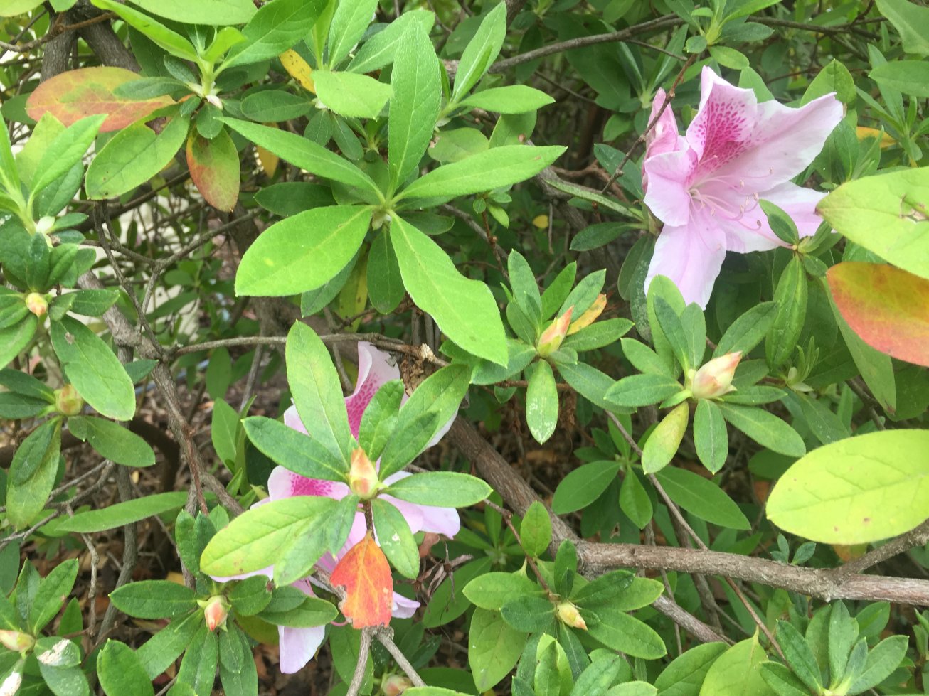 The azalea bushes along the Waterway started blooming last week. And they are the old-fashioned variety too.