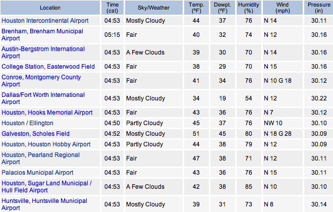 45°F and cloudy in College Station. We'll struggle to rise above 50°F today.