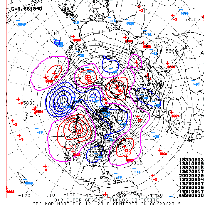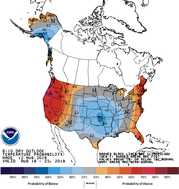 Expect daytime 30-40% chance of afternoon t-storms Friday - Monday. Not bad for mid-August.