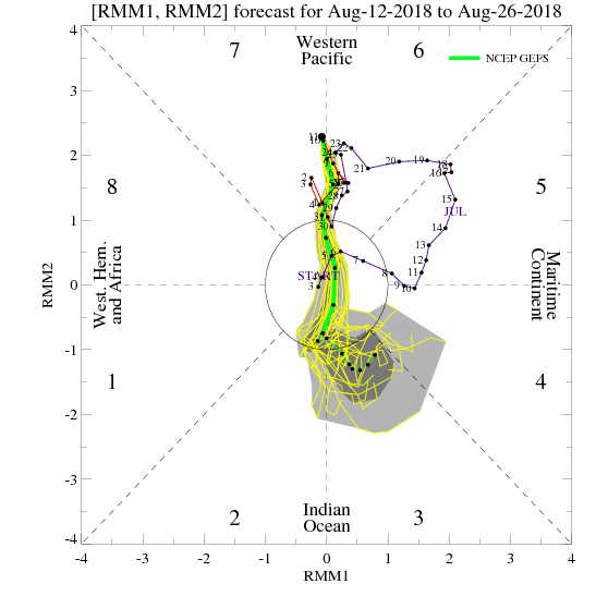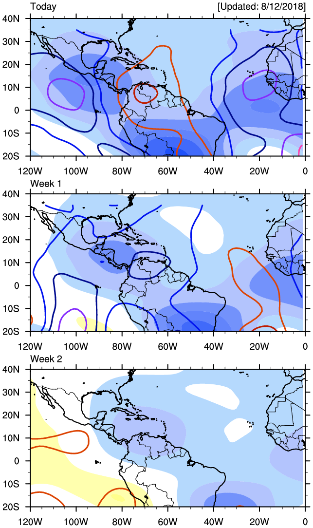 A fly in the ointment is a rather strong Convectively Coupled Kelvin Wave arriving over the Atlantic Basin for the next couple of weeks. My eye is focused near the Bay of Campeche for any spurious tropical mischief that may attempt to spin up in this favorable pattern of rising air across the Gulf and Caribbean.