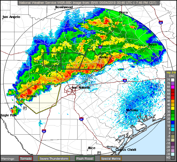 Complex of intense thunderstorms has developed from Del Rio to Austin.