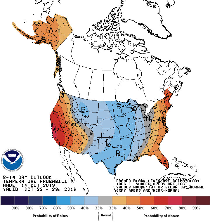 Looks like another shot of colder air arrives around the 21st, +/- a day or so. I do see some growing signs of a pattern change shaping up during the last week of October. Time will tell!