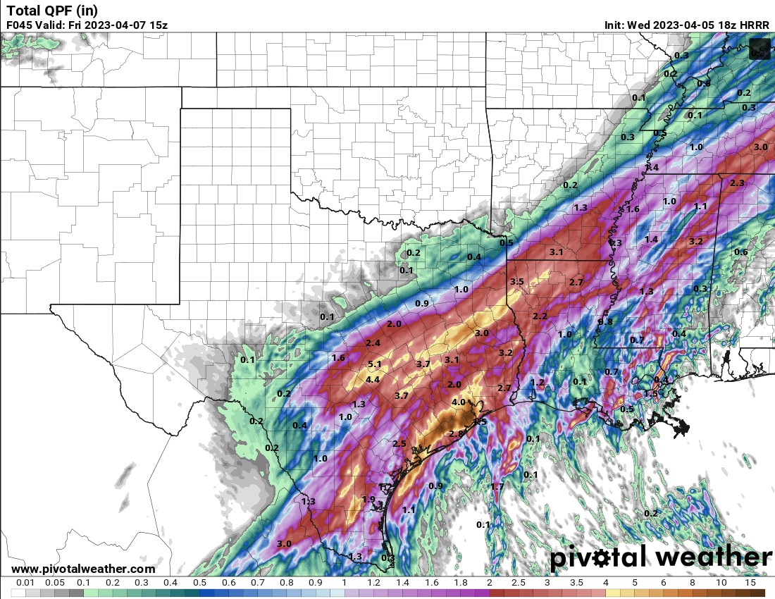18Z HRRR continues to show a bullseye over the coastal counties associated with the surface low strengthening on Thursday night/Friday with up to 15+ inches of rain in some areas..Watch out if the HRRR continues to show this.The HRRR can be very good at pinpointing "rain bombs" ahead of time.The NWS puts a lot of weight in the HRRR especially within 24 hours. If it continues to show this solution a FFW and moderate risk will be likely.