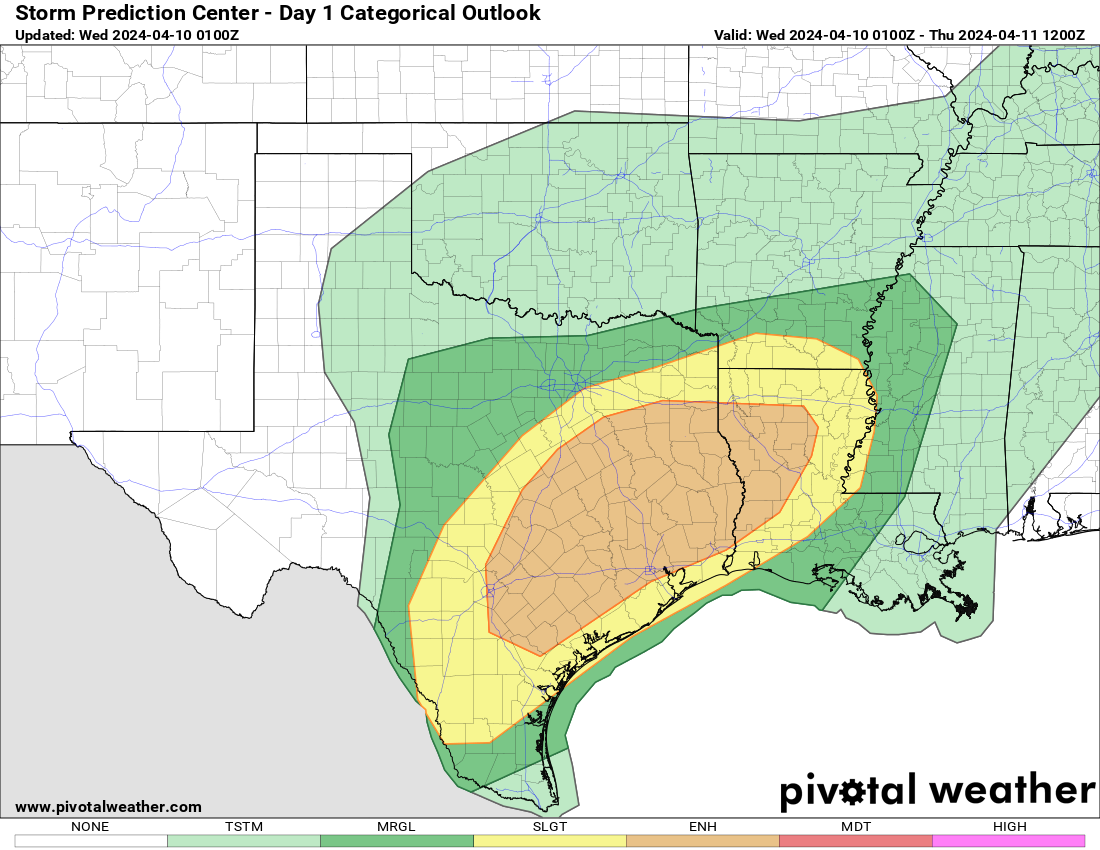 don wrote: ↑Wed Apr 10, 2024 12:02 am Yikes! "widespread damaging winds with isolated gust up to 85 mph likely"