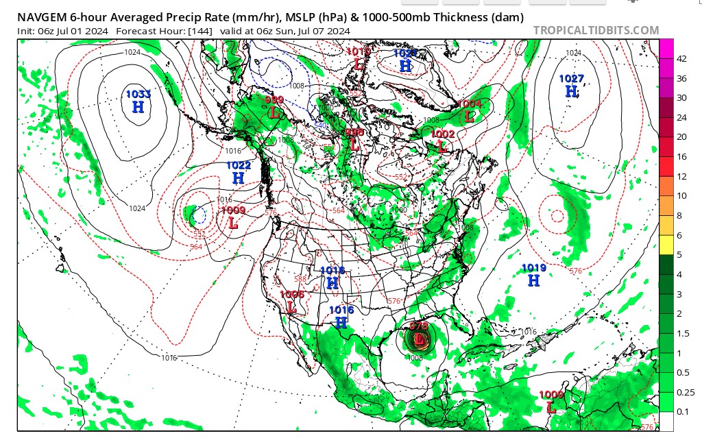 CMC and the new EPS have the ridge weakening from July 4-6 allowing Beryl to make landfall near the Tex-Mex border.