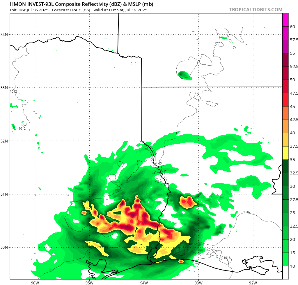 Hurricane models see inroads of 93L/Dexter to east of I-45. Not unreasonable.