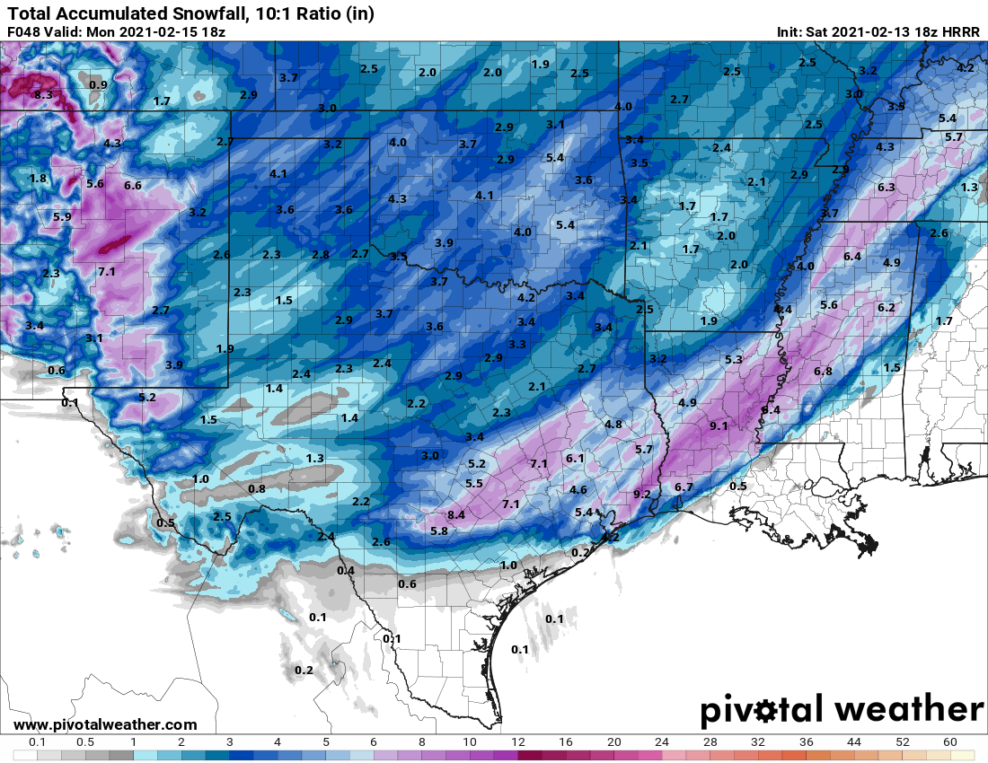 srainhoutx wrote: Sat Feb 13, 2021 2:43 pm 18Z HRRR ice and snow through 48 hours.