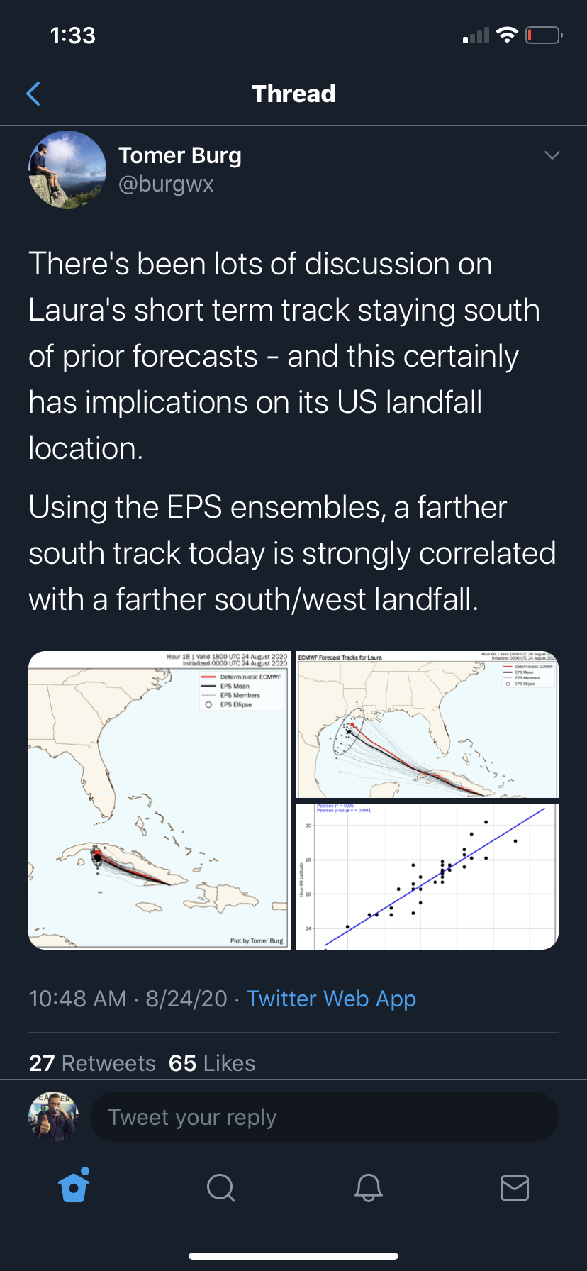 Unfortunately, idk if wxman57 really visits this board much anymore. He does drop by on storm2k on occasion but I don't think he has really given many thoughts about Laura lately.