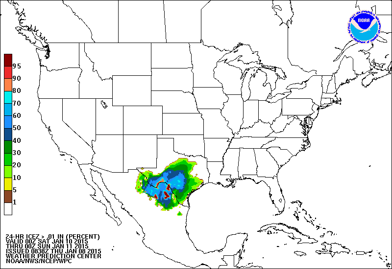 WPC freezing rain probablity graphics appear "aggressive" for much of SE TX Saturday PM.