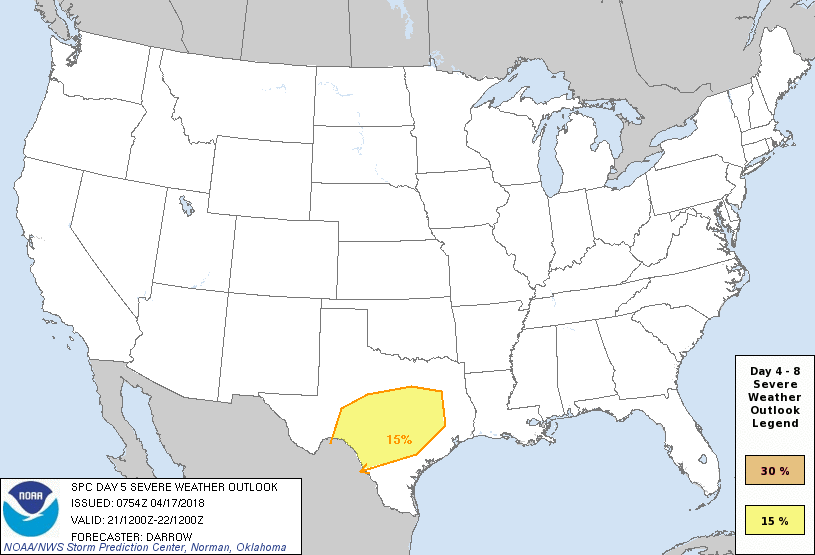 The weekend continues to look unsettled with a bowling ball vertically stacked mid/upper low tracking across Texas with a bit of a negative tilt in the trough axis suggesting a better chance of the possibility of seeing strong to severe storms Saturday into early Sunday before the next vigorous cold front sweeps off the Coast. The Storm Prediction Center has Outlined a potential Risk Area across S Central and Central Texas including the Brazos Valley Region. Unlike our past several severe weather events, this one looks much further South and also to our West instead of well to our N and NE.