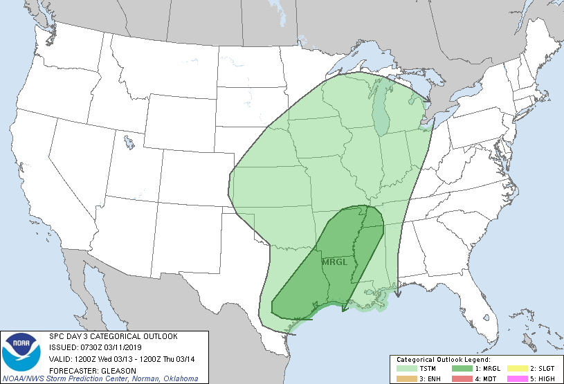 Models have pushed back on the timing of the front/line of storms. Instead of a late Tuesday night or early Wednesday morning event, this looks more like a mid to late morning event on Wednesday exiting our region by early Wednesday afternoon. After this system pushes through a much more cooler front coming from Canada will push through well out into the Gulf by Thursday late morning/early afternoon with highs back into the 60s and lows in the 40s for a few days. A cooler/below average end of March looks to be on the table as Cpv17 posted.
