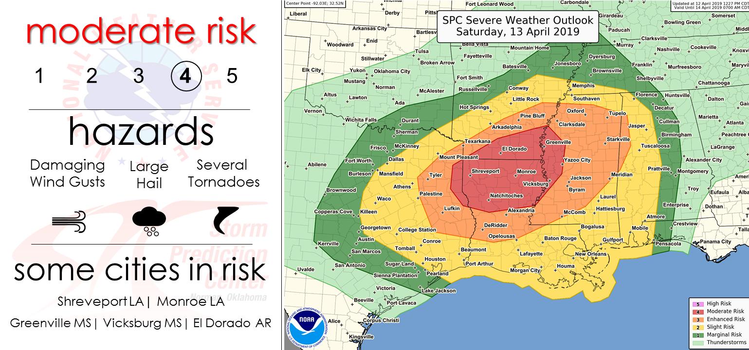 Significant severe weather outbreak likely on Saturday across east TX and LA including the potential for large damaging tornadoes.