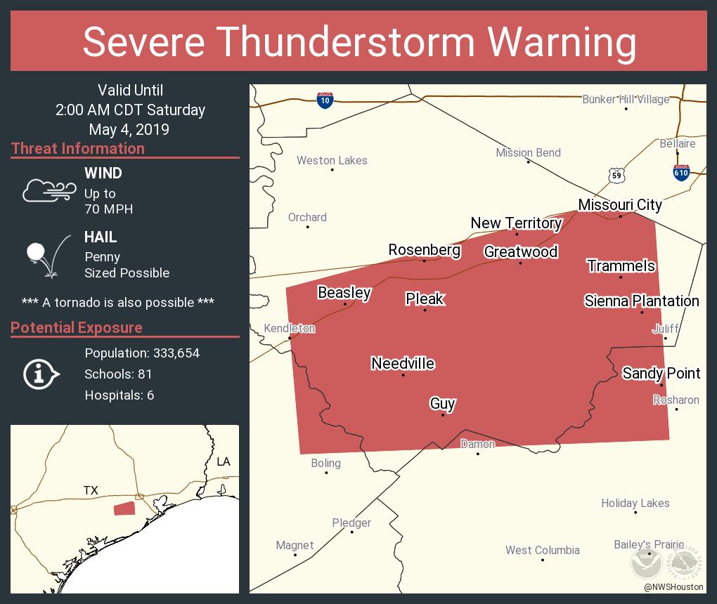 * At 113 AM CDT, a severe thunderstorm was located near Needville, or