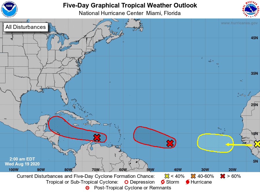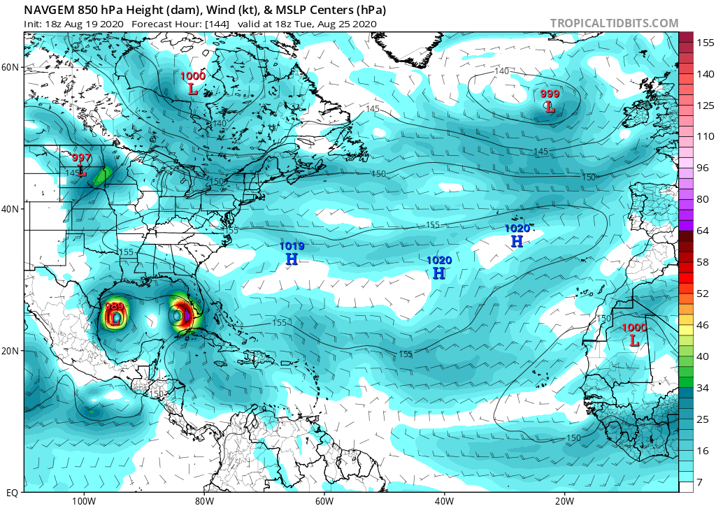 That’s a tough call because Genevieve could be out of the picture by the time 97L gets into the Gulf. It’s really expected to slow down. It could possibly sit in the western Caribbean for 2 days before it gets into the Gulf. The latest 12z Euro brings this to the mid TX coast as a strong wave or possible depression.Texaspirate11 wrote: ↑Wed Aug 19, 2020 1:36 pm Levi from Tropical Tidbits also has great videos each night.