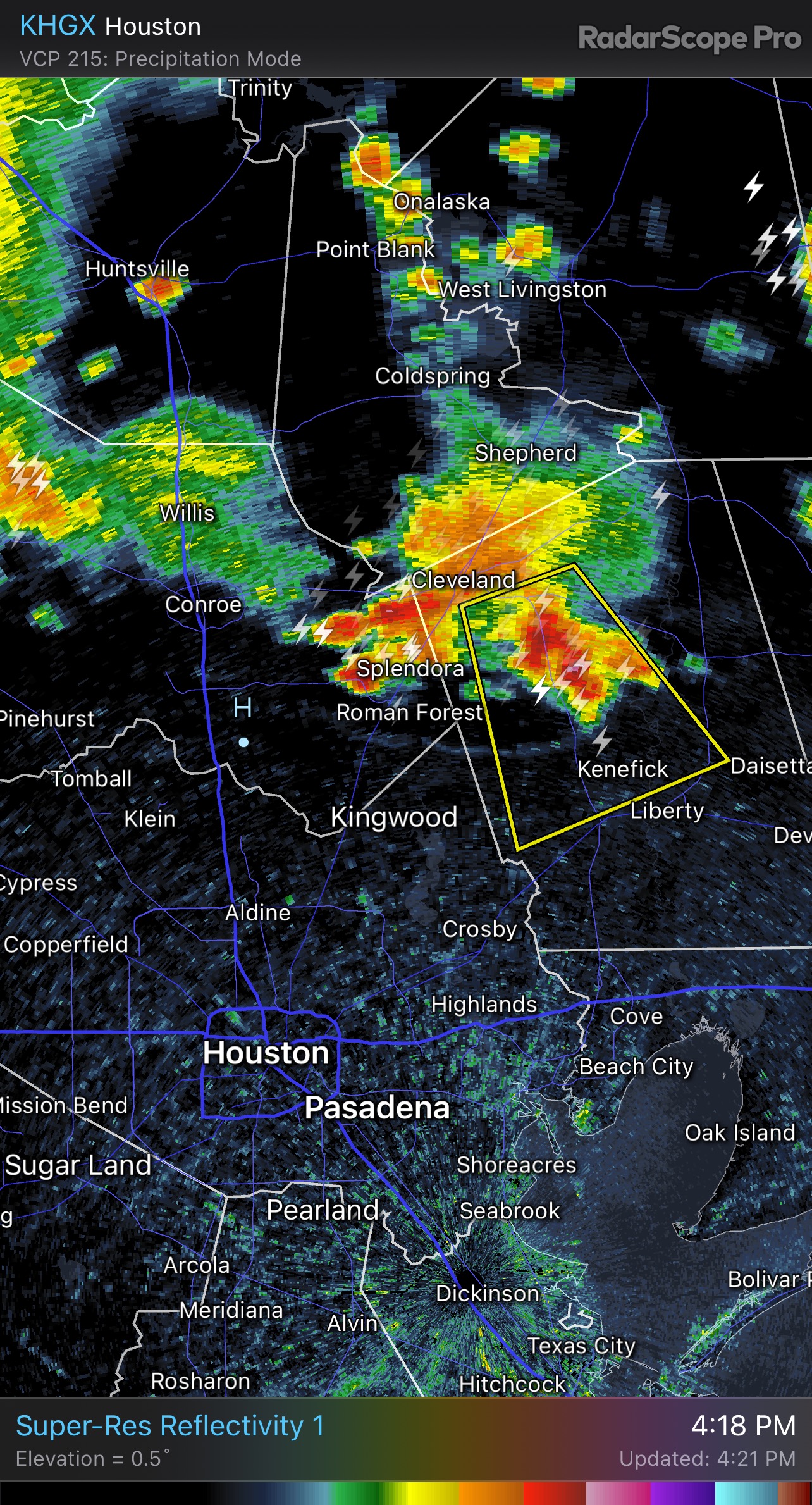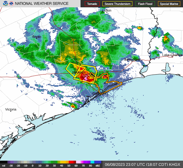 Storms firing in the metro from the outflow boundary.I think the heat island effect and proximity to Galveston Bay help for storms to sometimes focus/form over the city.Severe thunderstorm warning issued for Harris county.