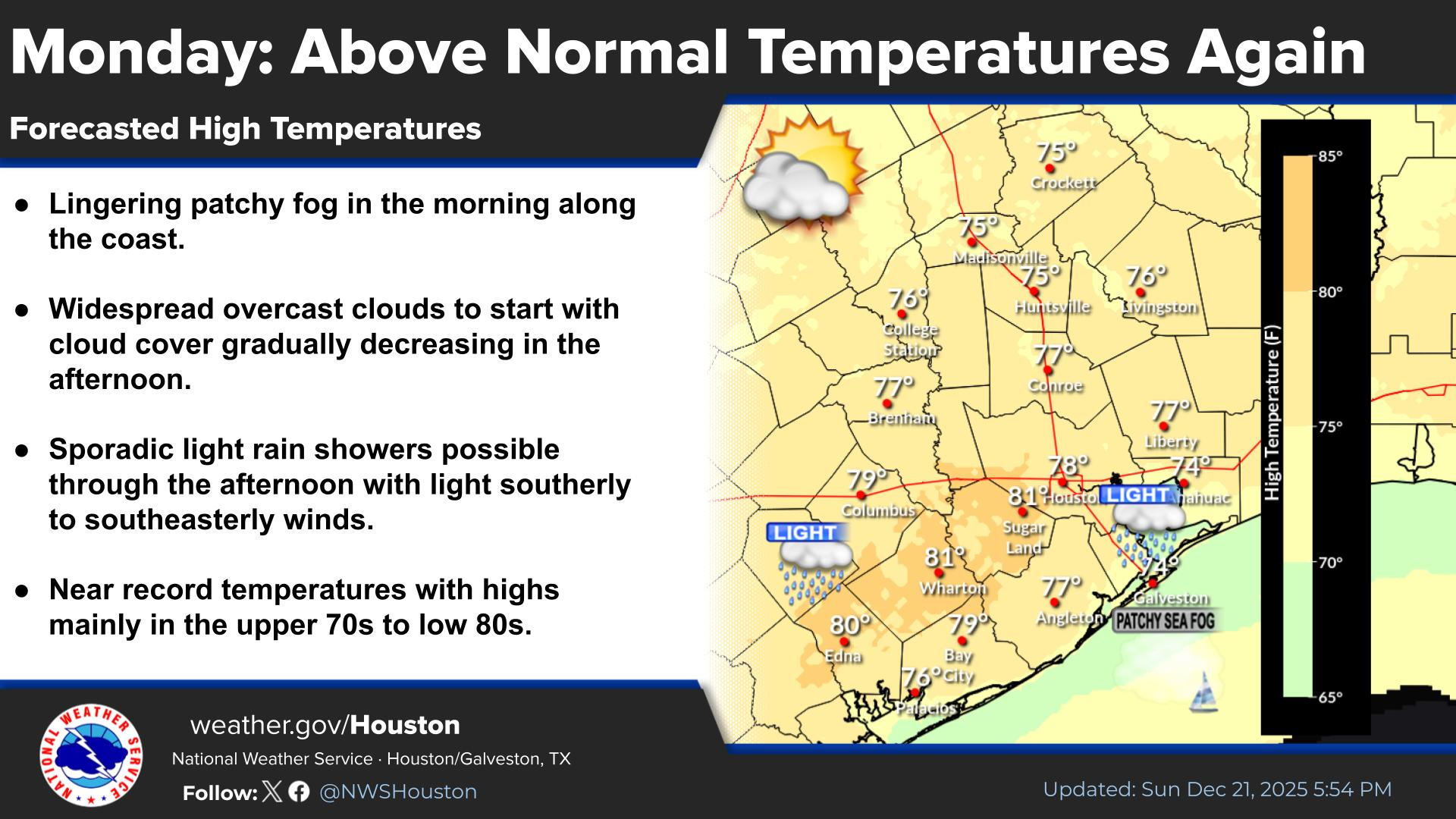 Today is a cooler respite with temperatures in the 60s and DPs in the 50s up in CLL. It won't last long.
