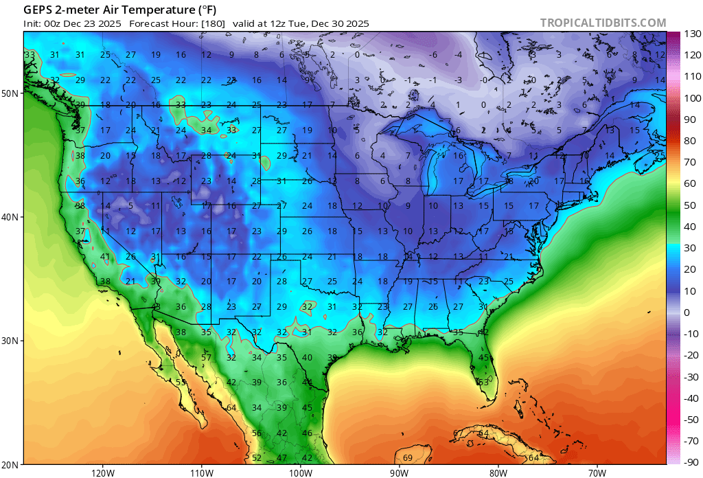 That's what I'm seeing. Next Sunday we transition back to seasonable norms.