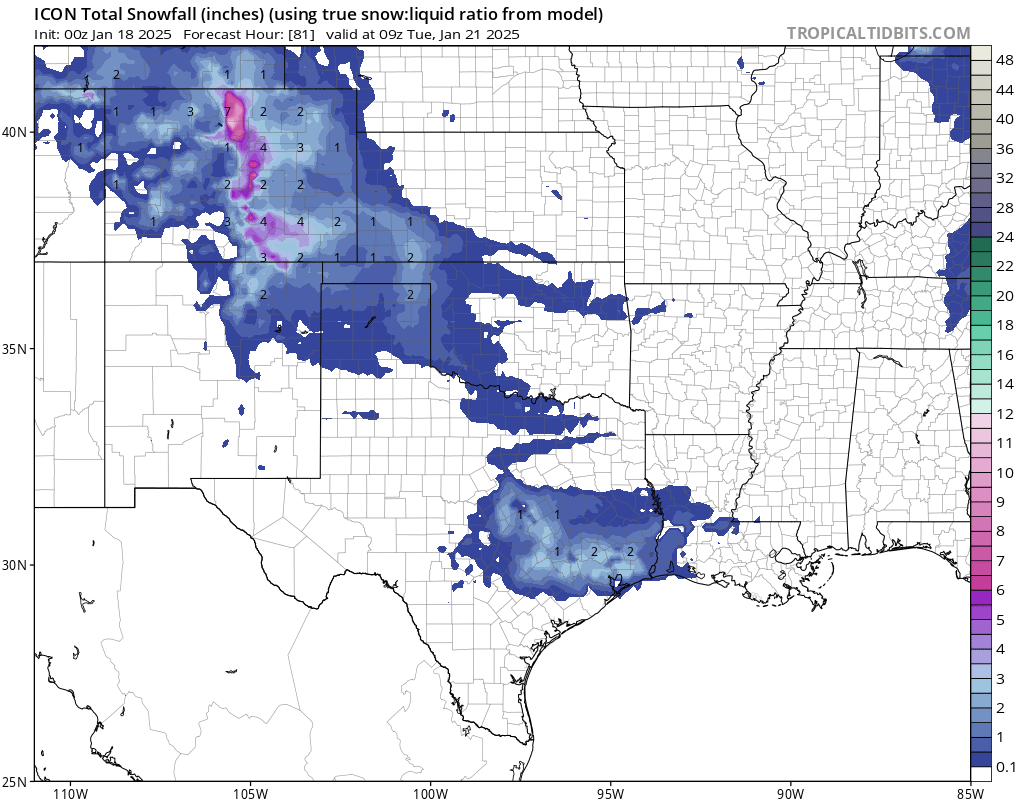 Euro not so bad at all if you want snow in Houston. I’d feel much better if the Euro and Icon weren’t so far out of step with Canadian and GFS. My understanding is that the Euro busted pretty badly in terms of overstating snowfall with the most recent front.