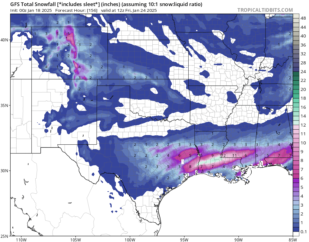 Stratton20 wrote: Fri Jan 17, 2025 11:34 pm 00z Euro caved to the GFS, more of a mix now, still 4-6 inches of snow, but now thats on top of an inch of sleet and .25 of ice, that would be an absolute mess, i guarantee wed be below freeing tuesday and all of wednesday with that