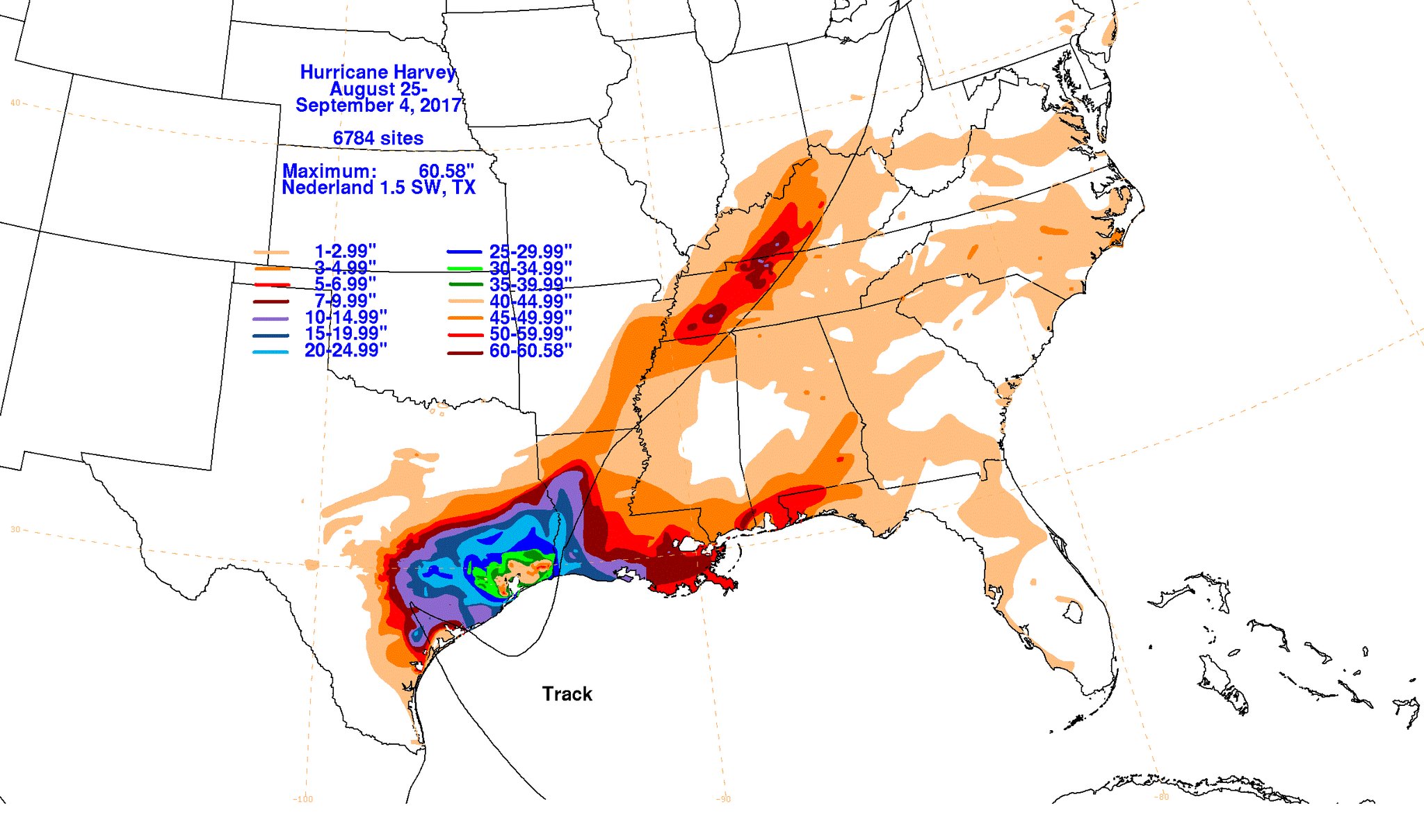 srainhoutx wrote:NWS Lake Charles issued their final report for Harvey. Nederland reported 64.58 inches of rainfall and Groves reported 63.14 inches of rainfall for the event.