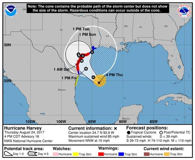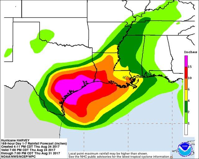 This week will feature the one year anniversary of the landfall of Hurricane Harvey on the Texas coast. Each of us was impacted by Harvey in some way and this week will be a moment of reflection from the events of that week. Each day this week I will send out a collection of the daily e-mails from 2017.