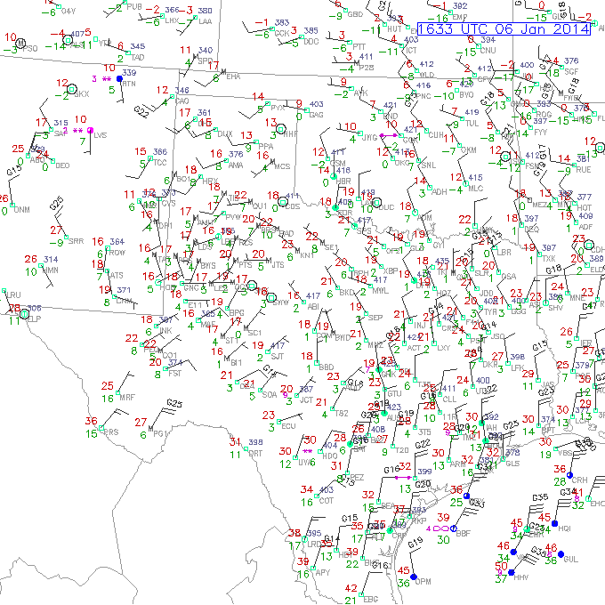 The pressures are even higher across the Austin area and still rising to 1043mb. The Ridge appears to be near San Angelo at this hour. That suggests to me that the Arctic High is to our W and will likely have little to no shifting to the E before we could reach the best chances of record or near record low temperatures. By the way, why has wxman57 not been posting here on KHOU? Has he forgotten about us?