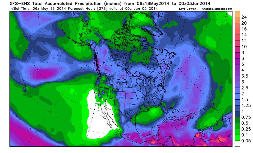 Euro sure paints a decent system moving through around Memorial Day. 2-3" most of SE Texas.