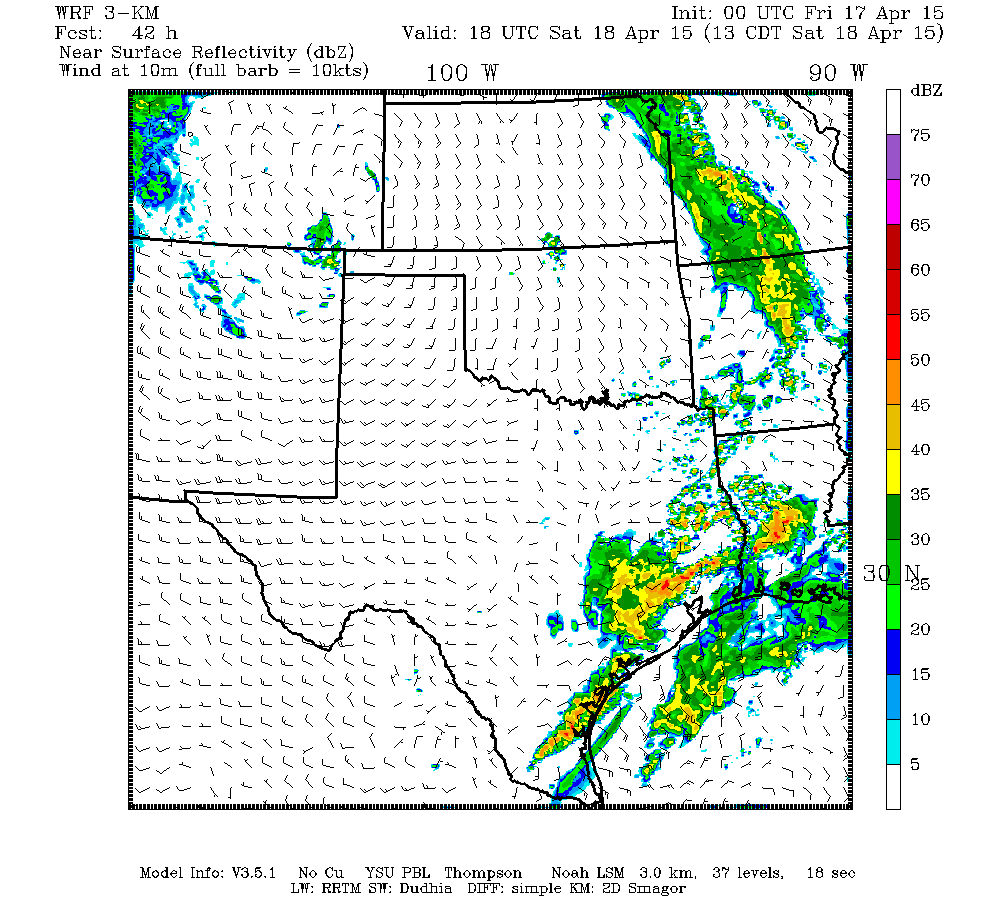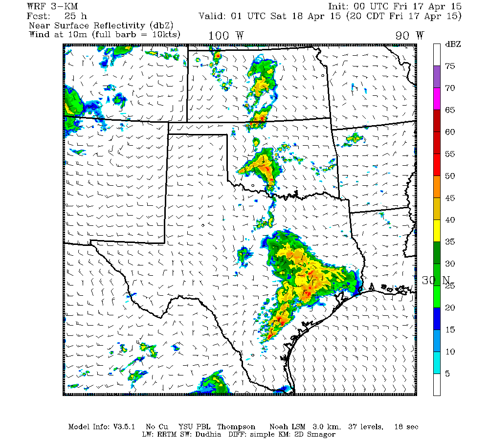 Tx-tech WRF model has been the most reliable model as of late and continues to show the formation of a meso-low ahead of a MCS tomorrow afternoon around San Antonio. This would help to sustain precipitation later into the evening and overnight hours.
