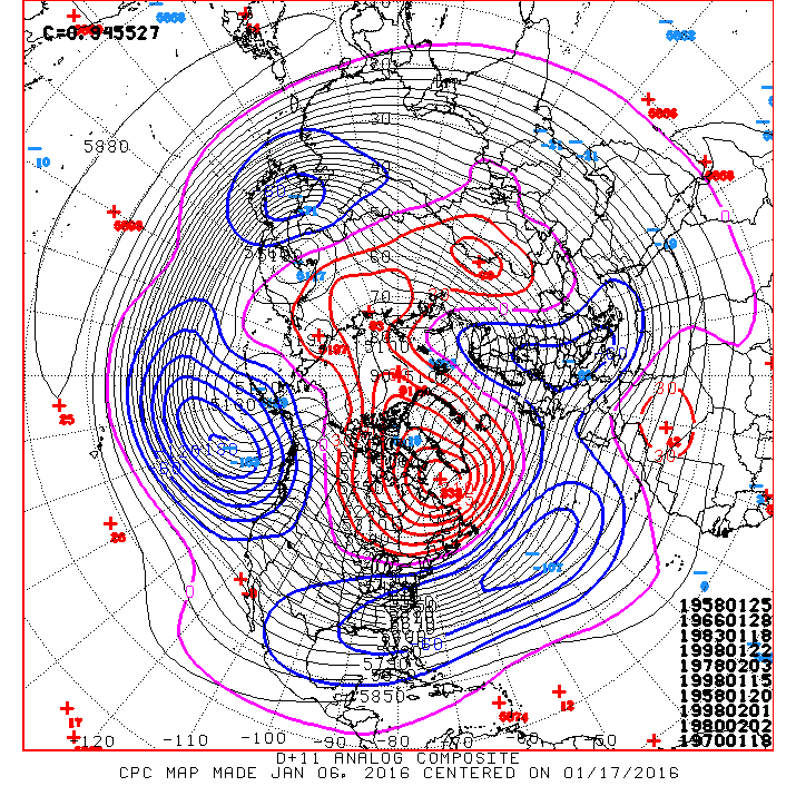 The afternoon Updated Climate Prediction Center Day 11+ Analogs seem to fit well with past stronger El Nino Winter years. That would place us in the mid to late January timeframe.
